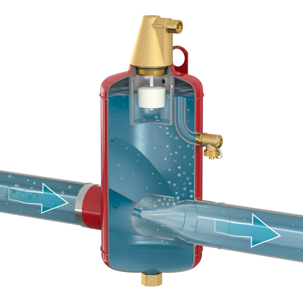 Bộ tách khí Flamcovent Smart bằng thép mới loại bỏ ngay cả những bọt khí nhỏ nhất khỏi nước lắp đặt. Smart hoạt động tốt hơn 60% so với các bộ tách khí thông thường trong khi lực cản dòng chảy đã được giảm xuống mức không đáng kể.