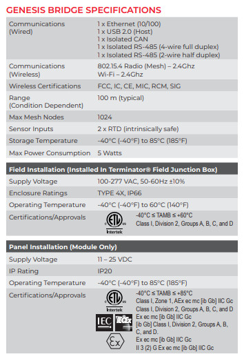 • Thermon Genesis Bridge – node for wireless