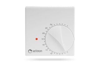 Battery powered analog electronic programmable thermostat Tempora, daily programming with timer for 2 temperatures adjustable with knobs. Three operating modes: off-antifrost, automatic, manual.