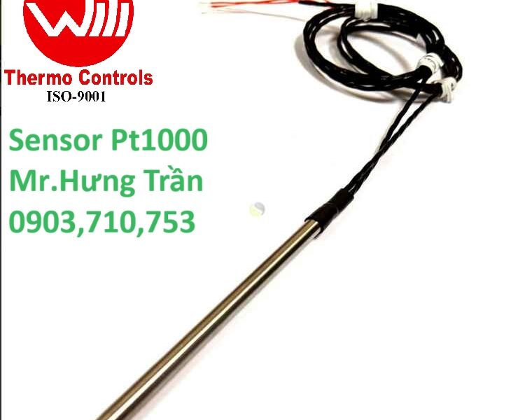 Nhiệt kế điện trở có phần tử Pt1000 và vỏ bọc bằng thép không gỉ 316 để bảo vệ trong không khí hoặc chất lỏng.